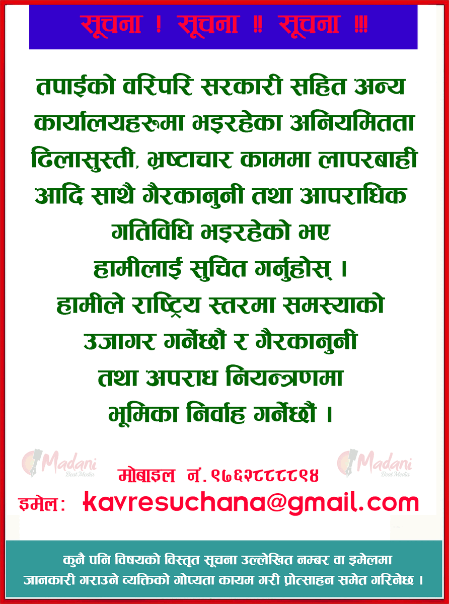 दैनिक युवाहरु विदेशिन थालेका छन् । स्वदेशमा कृषि तथा पशुपंक्षीबाट उत्पादन भएका धेरै उत्पादनहरुले बजार पाउन सकेका छैनन । स्वदेशमा काम गर्ने वातावरण नहुने, उत्पादन भएका सामाग्रीहरु विक्री नहुने, रोजगारको अवसर नहुने जस्ता तमाम समस्याहरु किन भए ? उद्योगी ब्यवसायीहरुका...